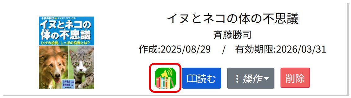 グループIDでログインしているDAISY製作の本箱の図書は、対象外です。