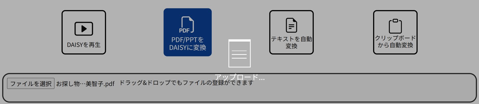 ① 『PDF/PPTをDAISYに変換』を選択します。