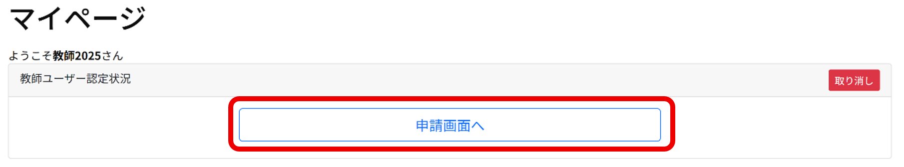 1. マイページの『申請画面へ』をクリックし、申請を行うページに移動します。