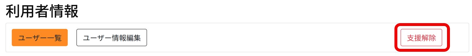 支援解除を行う対象者の「下三角」マーク左側『利用者情報詳細』をクリックして表示されるページ上部に『支援解除』ボタンがありますので、そちらから解除を行ってください。